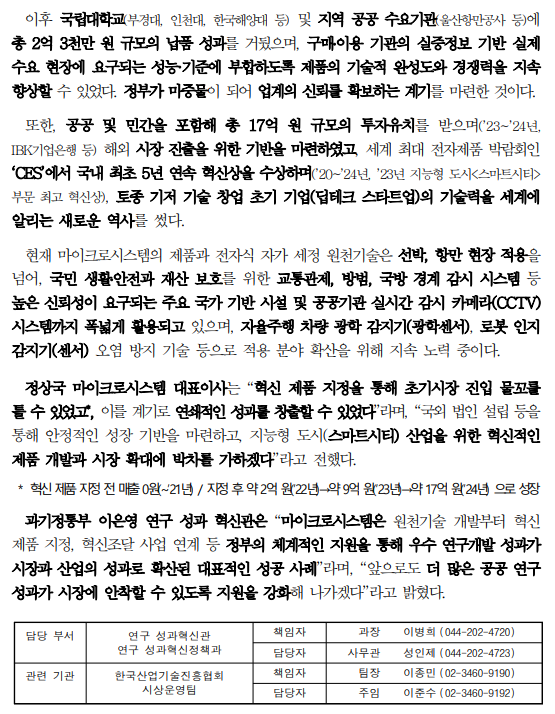 | 제목 | (과기부) 혁신 제품 하나가 만든 연쇄효과, 혁신조달·투자유치·해외 진출까지 이어진 정부 연구개발 성과 |